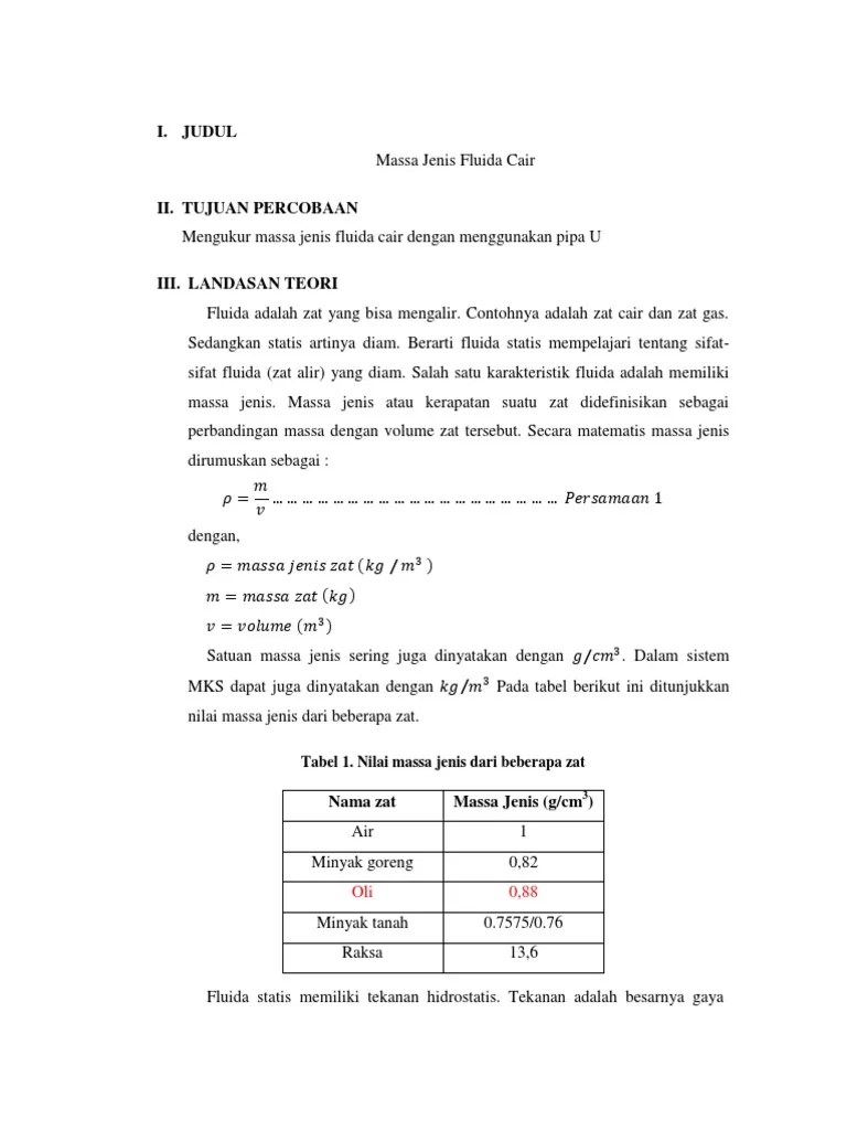 Contoh Laporan Fisika Pengukuran Massa Jenis / Laporan Praktikum Massa Jenis Zat Cair / Laporan praktikum fisika dasar 1 pengukuran pada benda padat.